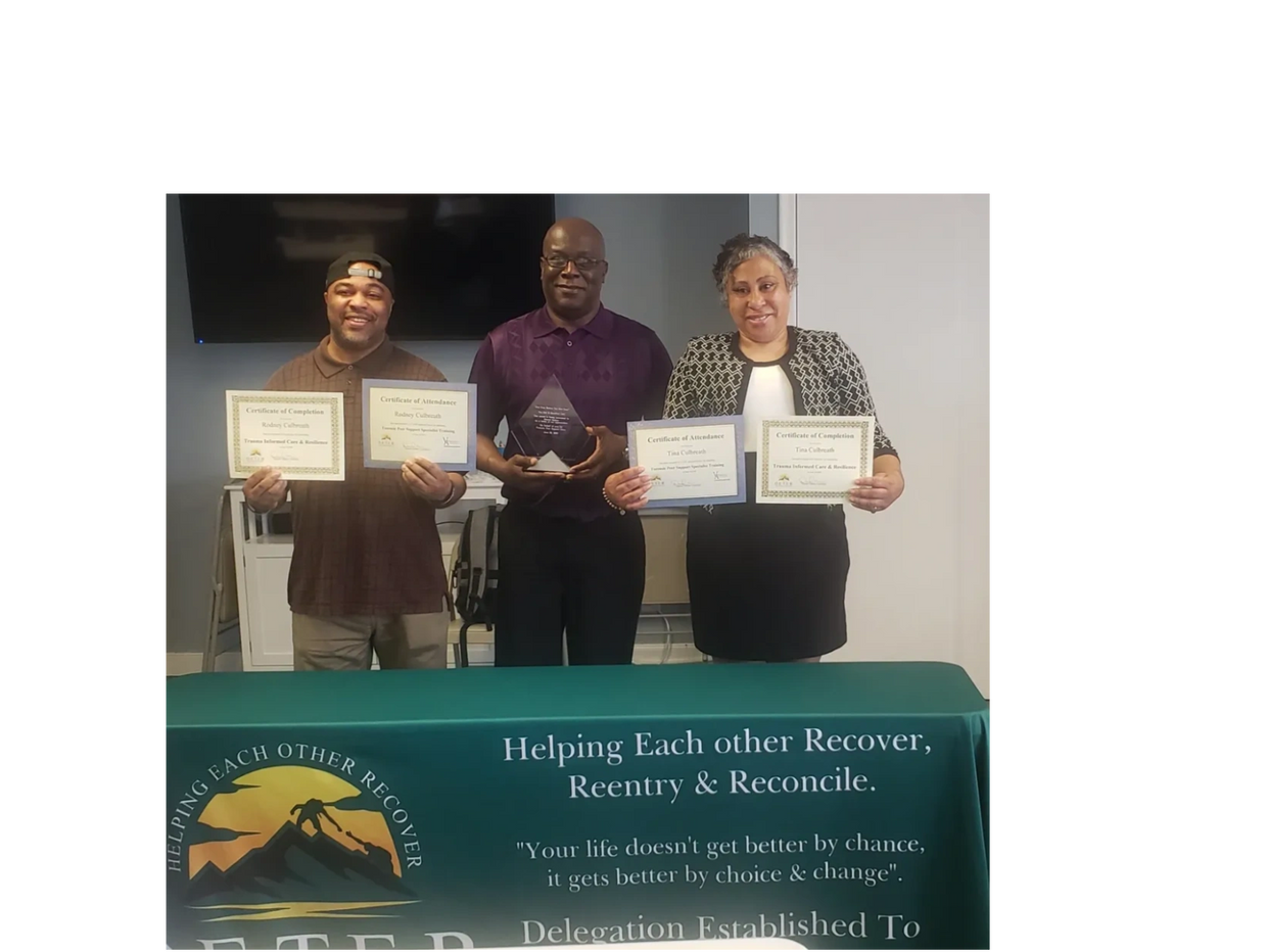 To provide an opportunity for individuals who struggle and suffer with mental wellness, substance use disorder and a criminal history succeed in Recovery, achieve Reconciliation with their family and enhance their Re-entry efforts with all the Resources necessary.